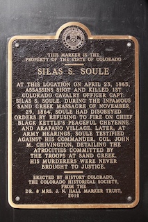 Today, the descendants of the Cheyenne and Arapaho people of Colorado continue to testify to the horror of November 29, 1864, and commemorate the events with a Healing Run from Sand Creek to Denver. The run is meant to “heal the land and heal the spirit” of the people who died that day. The City of Denver honors the calvary officer who refused to fire on innocent people. A historic plaque stands at the site of Silas Soule’s murder. Courage comes in many forms. Sometimes, it dwells within the heart of a soldier who disobeys orders. Sometimes, it dwells in a people’s long struggle to survive and thrive.