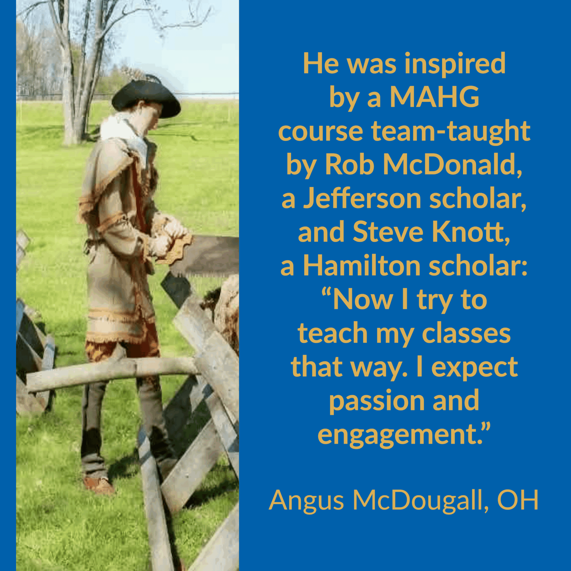 At Crestwood High School, McDougall teaches both Advanced Placement and dual enrollment US History and an elective on American wars. He also co-teaches a course he designed with colleagues in the science and English departments. He drew the themes of the course, and its team-taught design, from his MAHG experience.