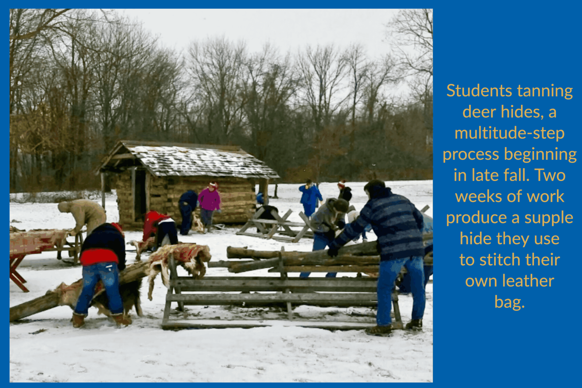 Historical assignments for year one include Cresswell’s journals and secondary studies by Richard White, Alan Eckert, and Fred Anderson. Students also practice early 17th century survival skills. They’re helped by local citizens and distant museum professionals.