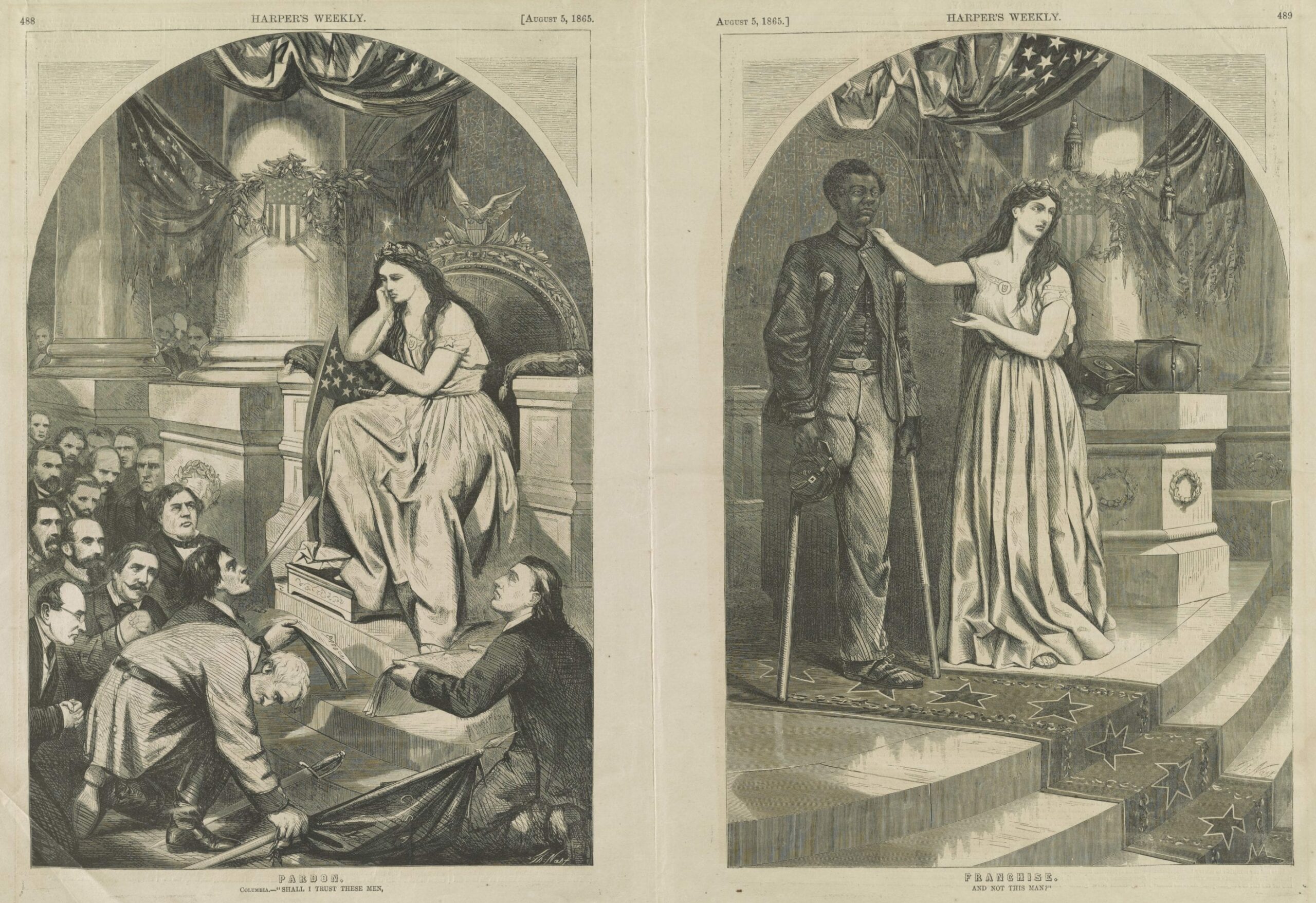 Negroes so enlisted will be organized into companies, battalions, and regiments, under the orders of the United States military authorities, and will be paid, fed, and clothed, according to law. The bounties paid on enlistment may, with the consent of the recruit, go to assist his family and settlement in procuring agricultural implements, seed, tools, boots, clothing, and other articles necessary for their livelihood.